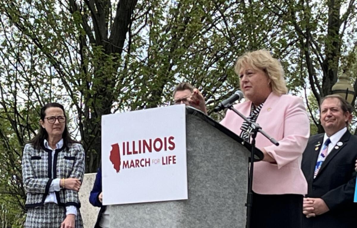 Another speaker, State Sen. Terri Bryant (pictured) (R-Murphysboro), said while many accept abortion and embrace a woman’s right to choose, “that is not what the Lord tells us to do.”
