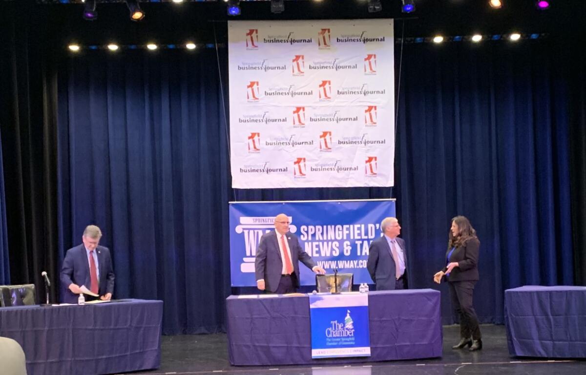 The Greater Springfield Chamber of Commerce put on the forum Wednesday at the Hoogland Center. The election is April 4.