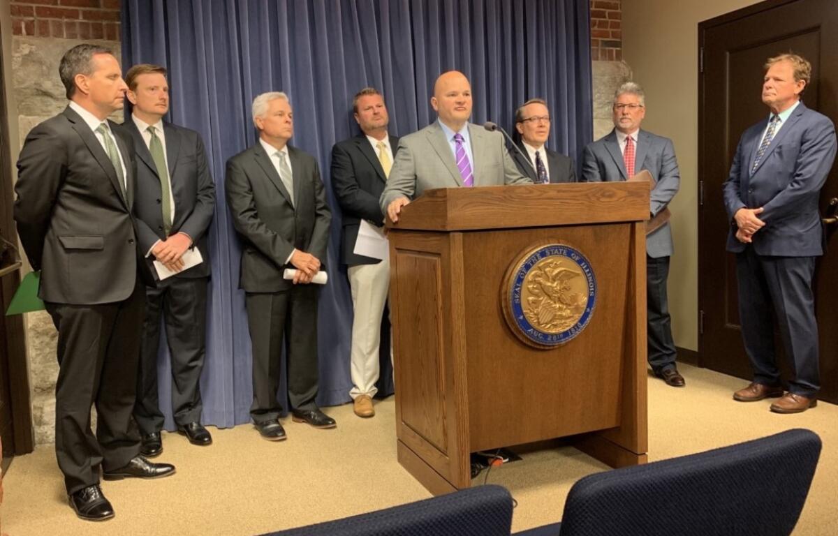 Denzler president of the Illinois Manufacturers’ Association, announced his group’s 2024 legislative priorities Wednesday at the Illinois State Capitol.