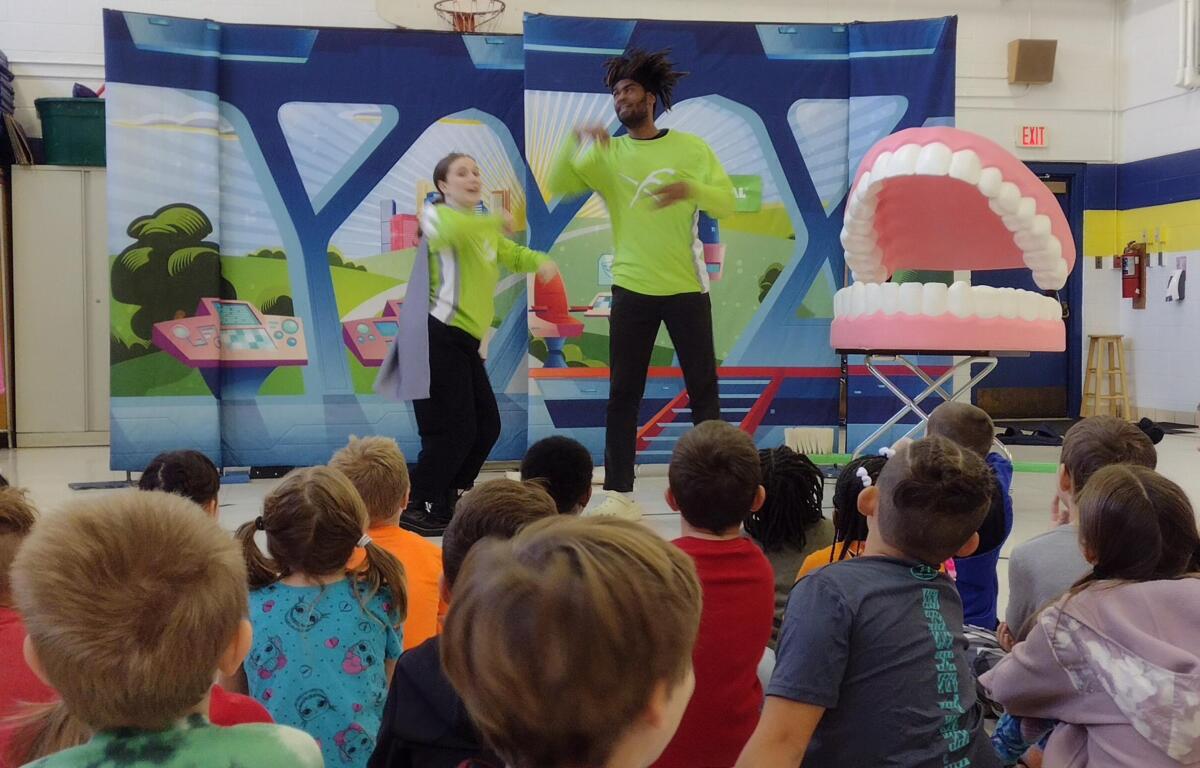 Terry Toothpick, Caz Cavity, Captain Super Smiles and other colorful characters used giant props and exciting backdrops to take students to The Land of Smiles where they learned about proper brushing techniques, the importance of twice daily brushing and flossing, regular dental visits and other tips and techniques to insure a lifetime of health smiles.