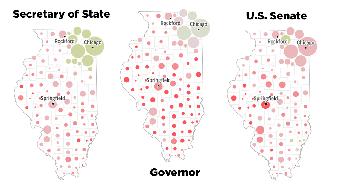 But the geographic divide was also evident in the race for the GOP’s secretary of state nomination, which pitted Joliet Junior College Trustee Diane Harris against Walter Adamczyk, a GOP committeeman for Chicago’s 29th Ward.
