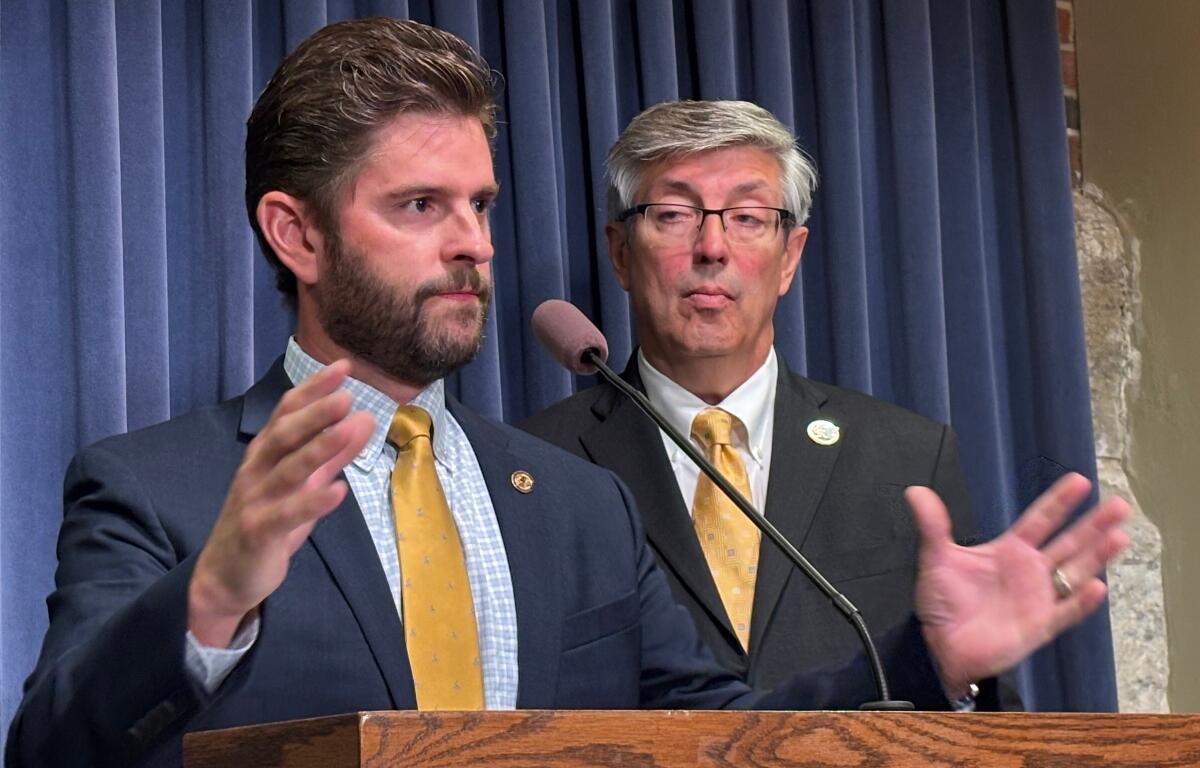 Texas Republicans, hoping to guard against possible losses in next year’s election, got the mid-decade remap ball rolling, with California Democrats following suit. State Rep. Ryan Spain (pictured, left) (R-Peoria) spins the “what about” question back toward Illinois: “Neither one (of those states) will be as badly gerrymandered as Illinois already is.” Spain, joining Davidsmeyer and State Rep. Dan Ugaste (pictured, right) (R-Geneva) at the news conference, called for a national referendum on gerrymandering.