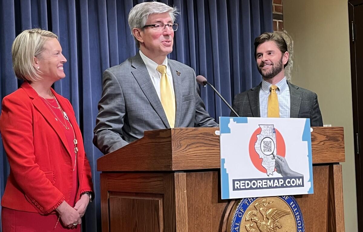 Springfield, IL (CAPITOL CITY NOW) – Illinois House Republicans hope to prevail in court over what they call continued gerrymandering – legislative maps drawn by supermajority Democrats. State Rep Dan Ugaste (pictured, center) (R-Geneva) says his argument is a simple one.