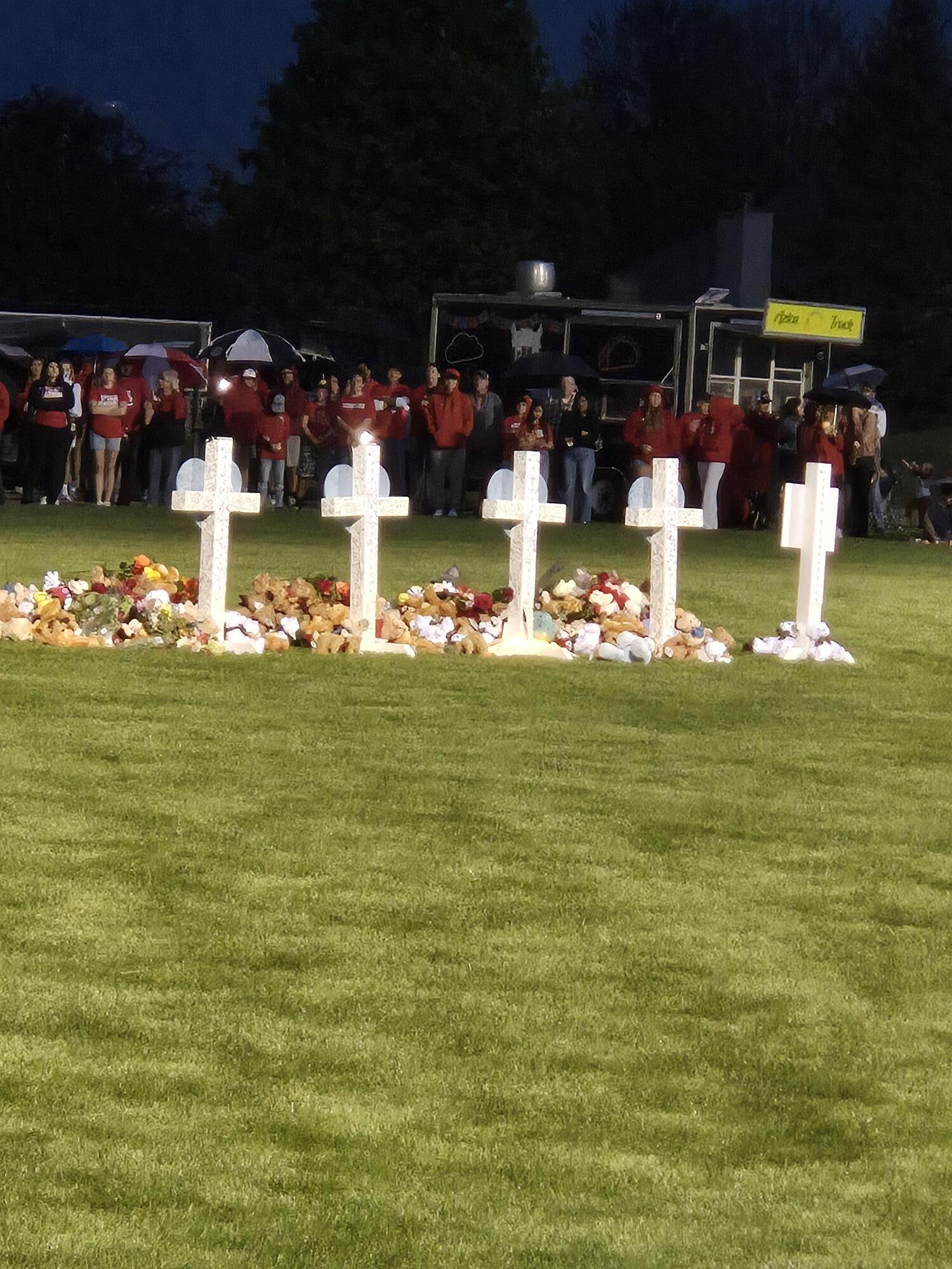 Chatham, IL (CAPITOL CITY NOW ) – With flashes of lighting in the distance hundreds gathered at Glenwood High School’s Titan Field on Wednesday evening to remember the four children killed and 6 others injured in a tragic vehicle incident at a Chatham after-school center.