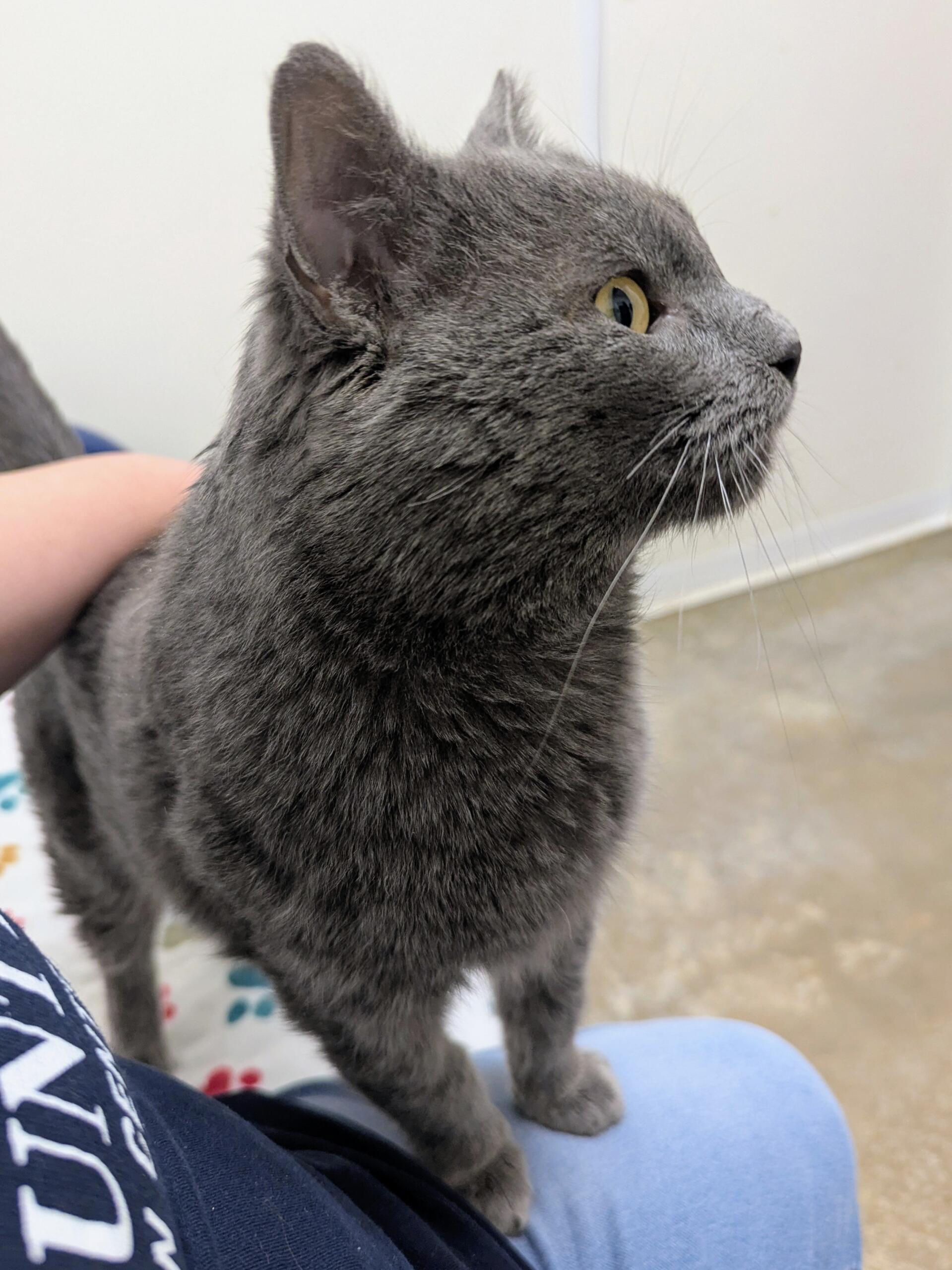 Springfield, IL (CAPITOL CITY NOW) – Greetings, I am Jerry. I am a gorgeous “blue” hunk, around 2 years old. I arrived at SCAC as a stray on January 21, and unfortunately, I arrived with FIV (feline immunodeficiency virus). You can read more about FIV here: https://www.petmd.com/cat/conditions/infectious-parasitic/fiv-cats, but the short story is that I can live a long life with FIV, and it is much harder for me to pass it to an FIV negative cat than was previously believed.