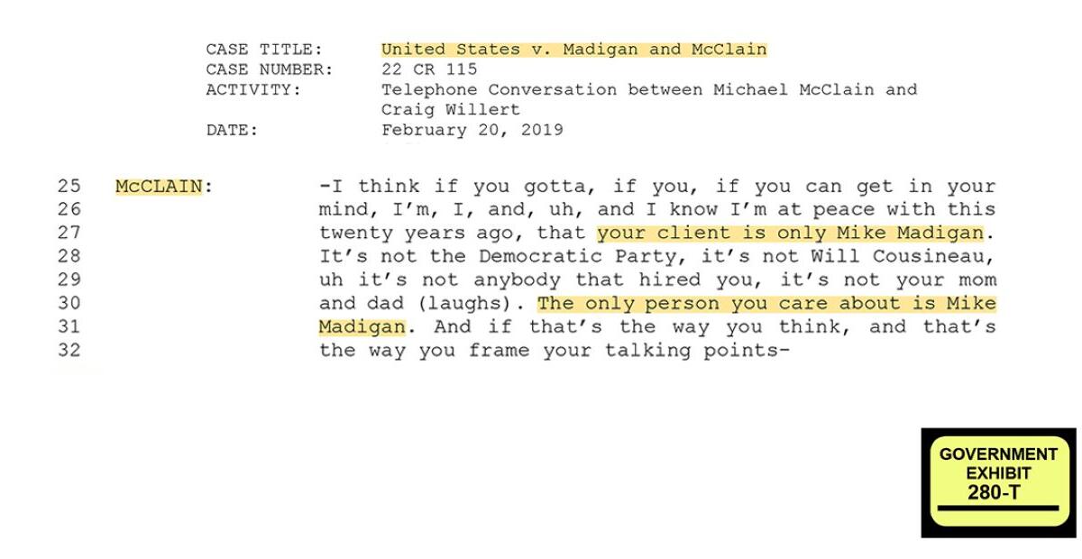 Prior to playing the more than 30 recordings of wiretapped calls on Thursday, prosecutors also showed the jury a December 2016 letter McClain sent to Madigan, in which McClain wrote that he “wanted to let my ‘real’ client know that I am retiring as a lobbyist” but said he was “willing … to do ‘assignments’” for the speaker.