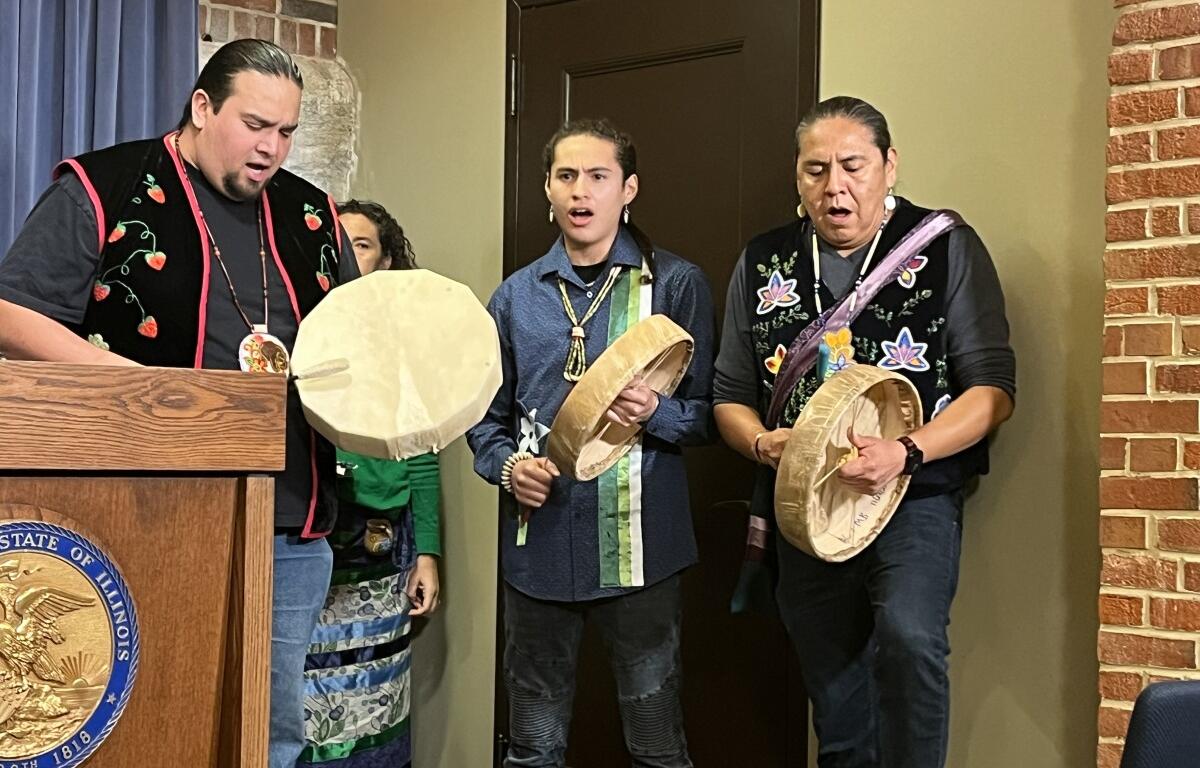 “We’re still here in Illinois,” said Chicago American Indian Community Collaborative president Jasmine Gurneau. “We have a voice. We have a story to share with our legislators and leaders to help them and to help others throughout the state be in right relationship with indigenous peoples and the territories.”