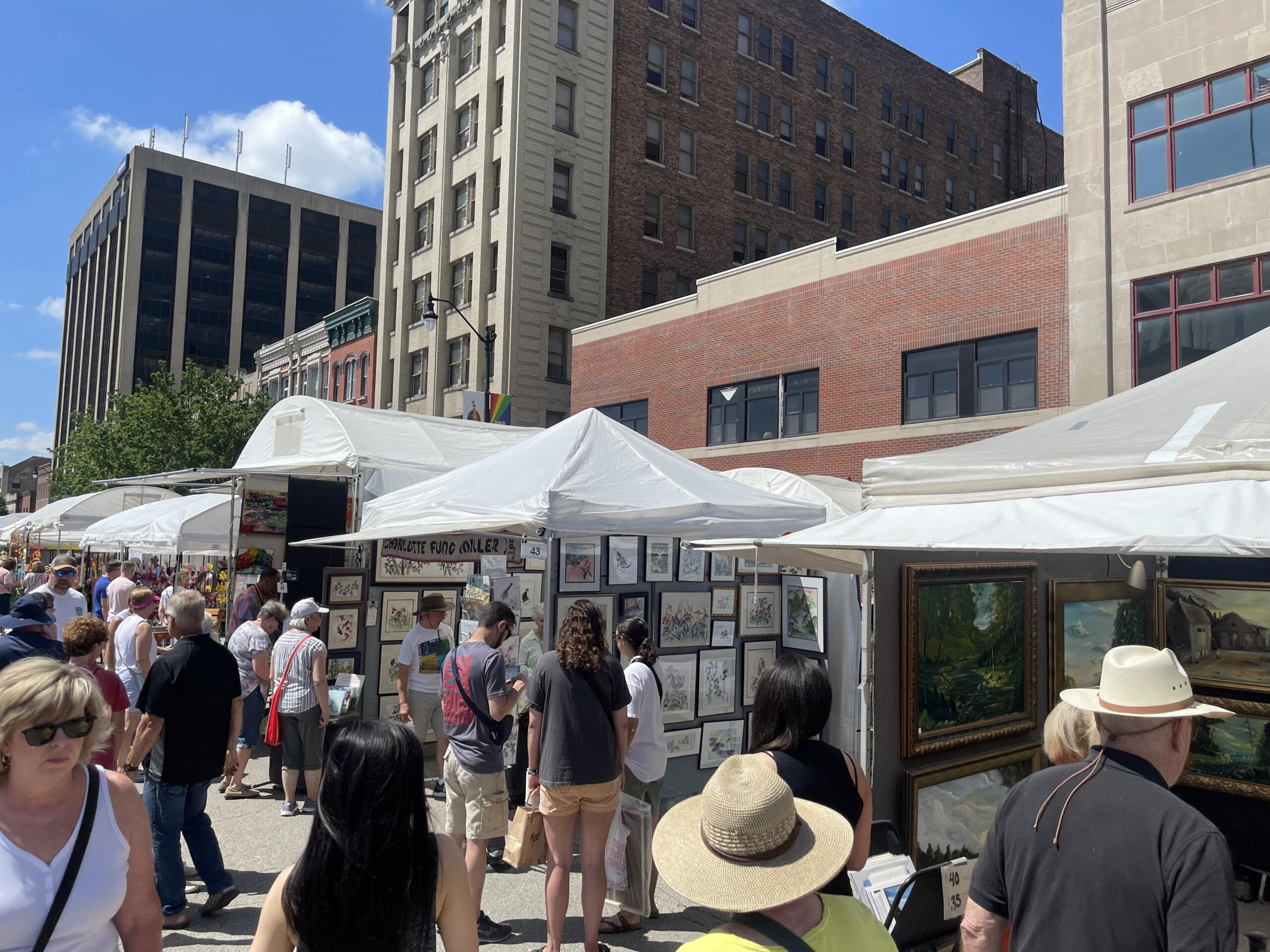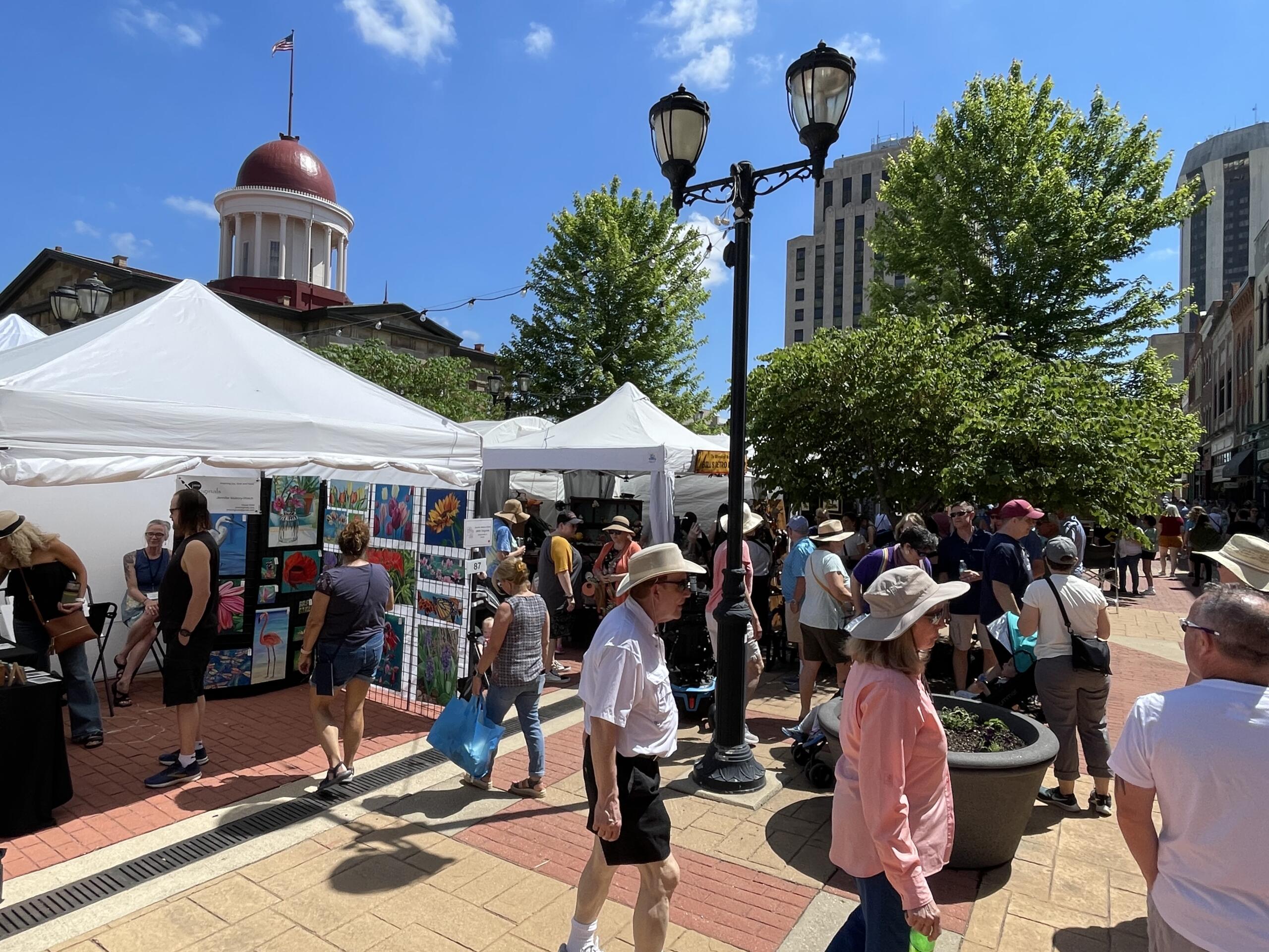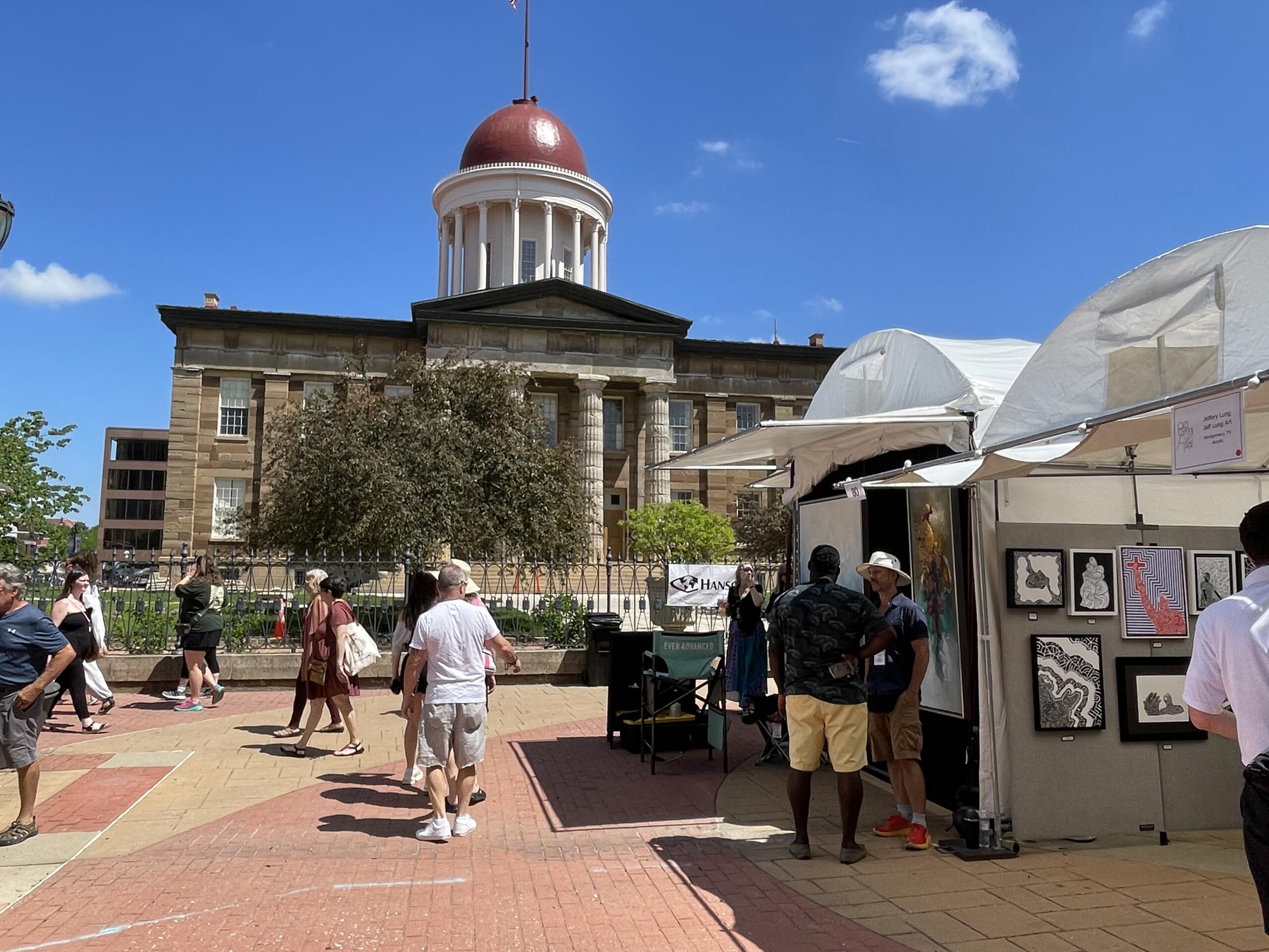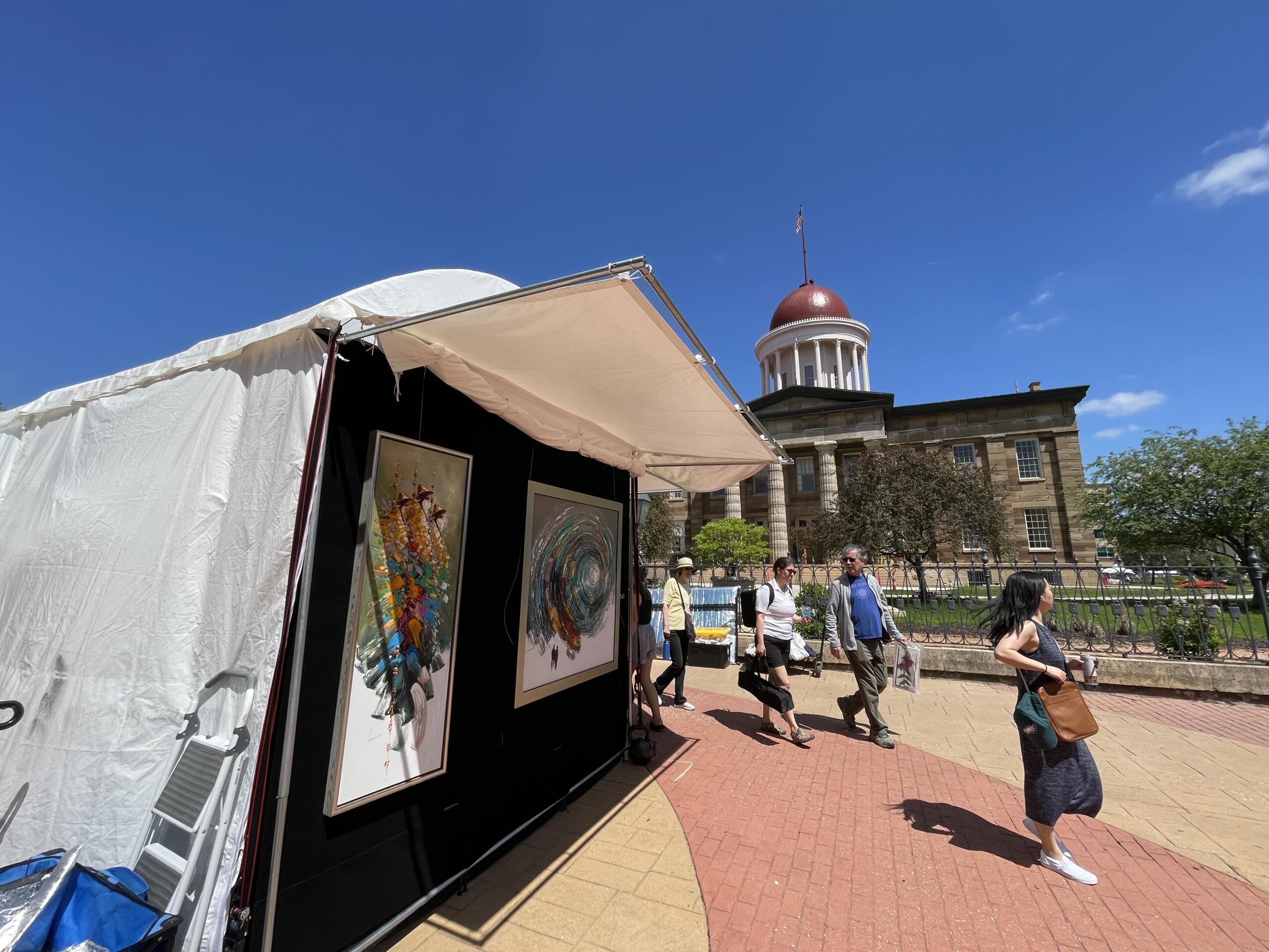 Springfield, IL. (CAPITOL CITY NOW) – On Saturday, the streets of Downtown Springfield were bustling with artists showcasing their paintings, sculptures, ceramics, leather creations, and more at the Old Capitol Art Fair. Many visitors left the event with unique, one-of-a-kind pieces.