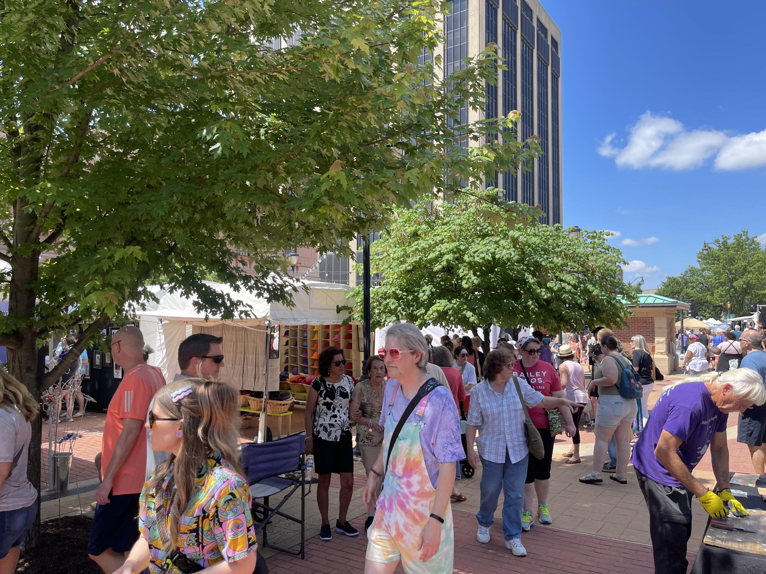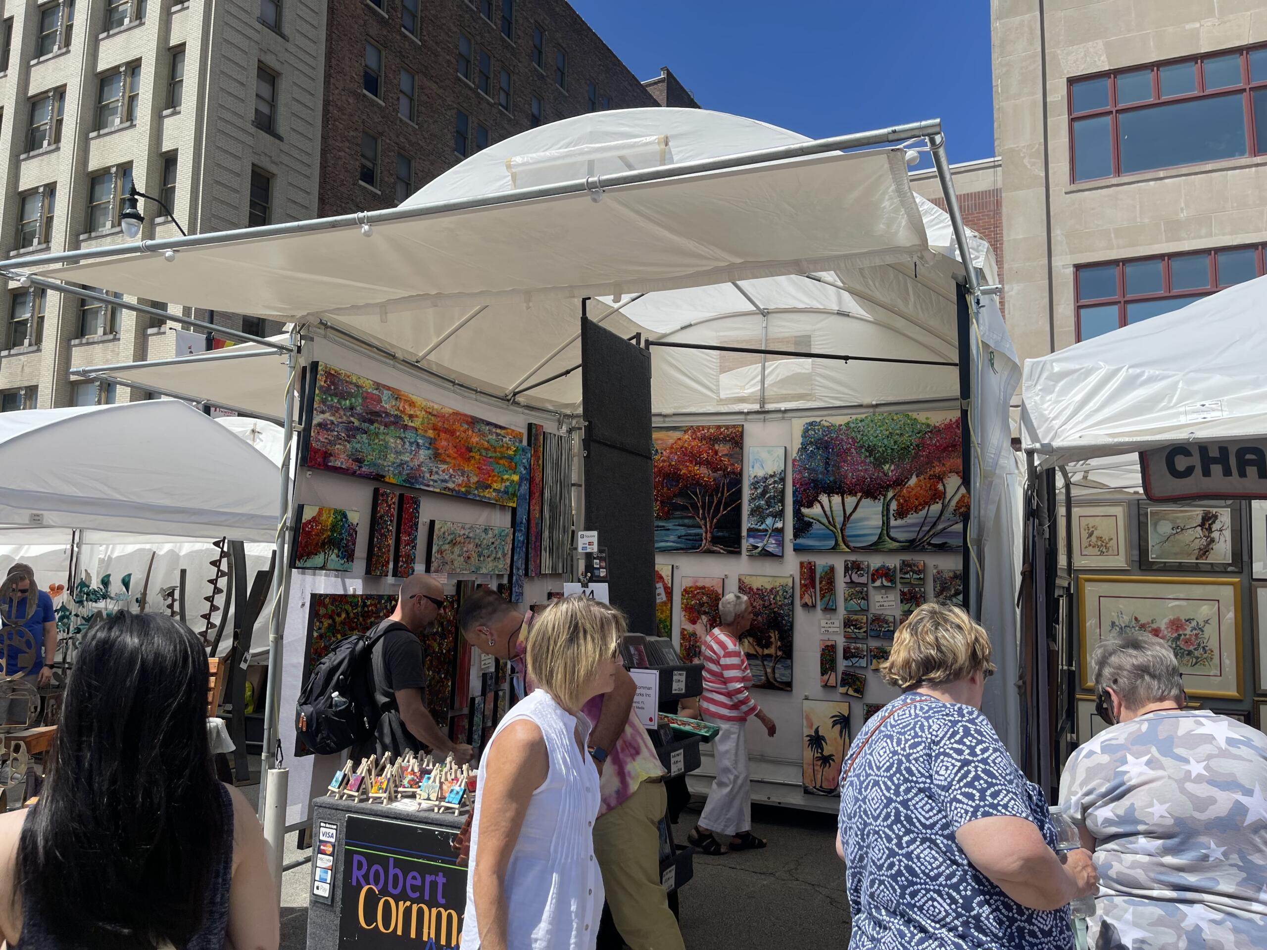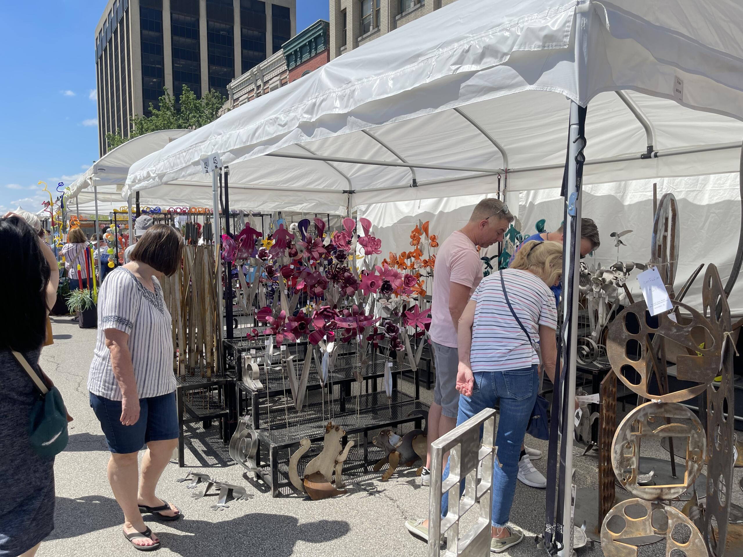 Springfield, IL. (CAPITOL CITY NOW) – On Saturday, the streets of Downtown Springfield were bustling with artists showcasing their paintings, sculptures, ceramics, leather creations, and more at the Old Capitol Art Fair. Many visitors left the event with unique, one-of-a-kind pieces.