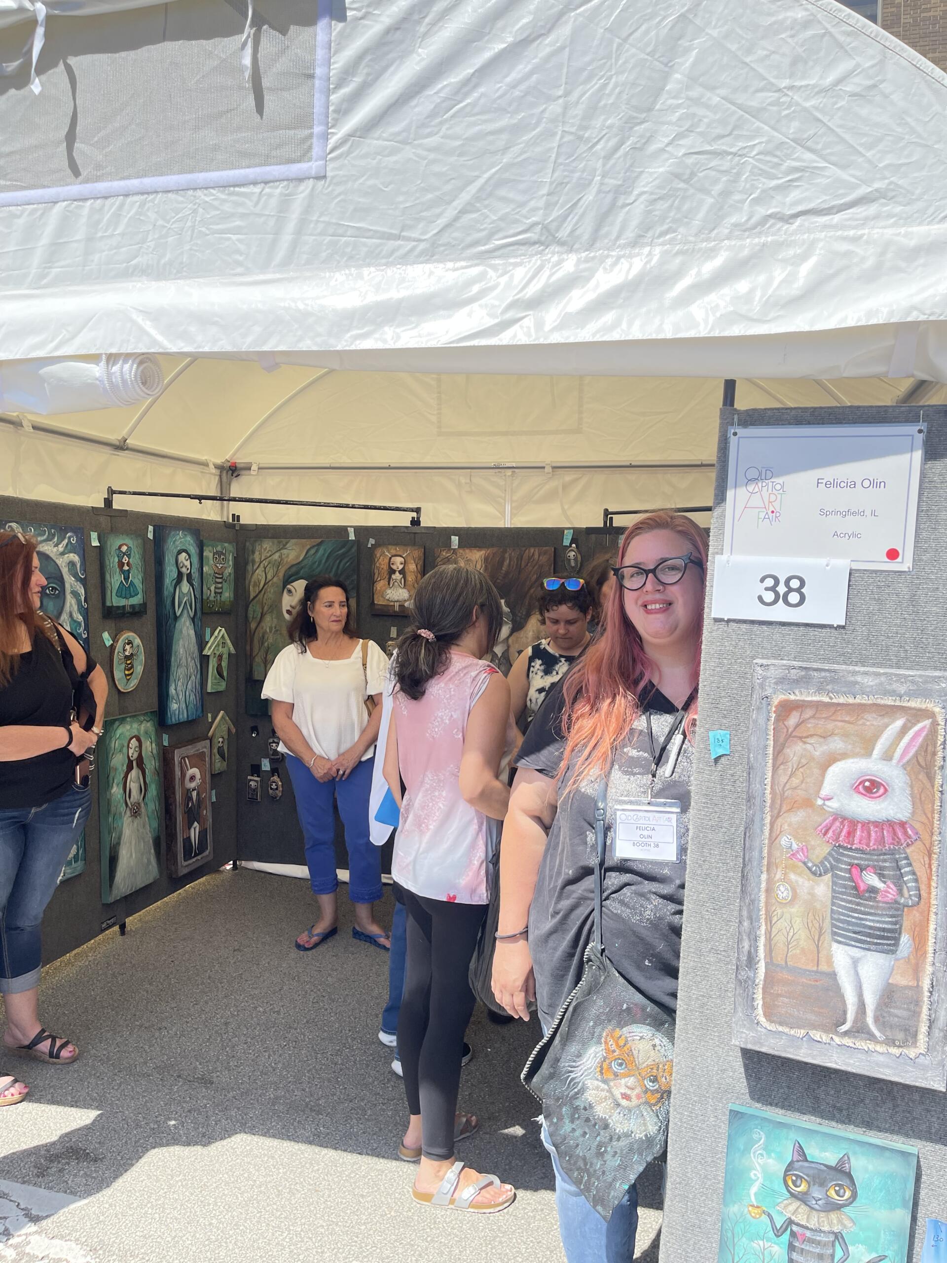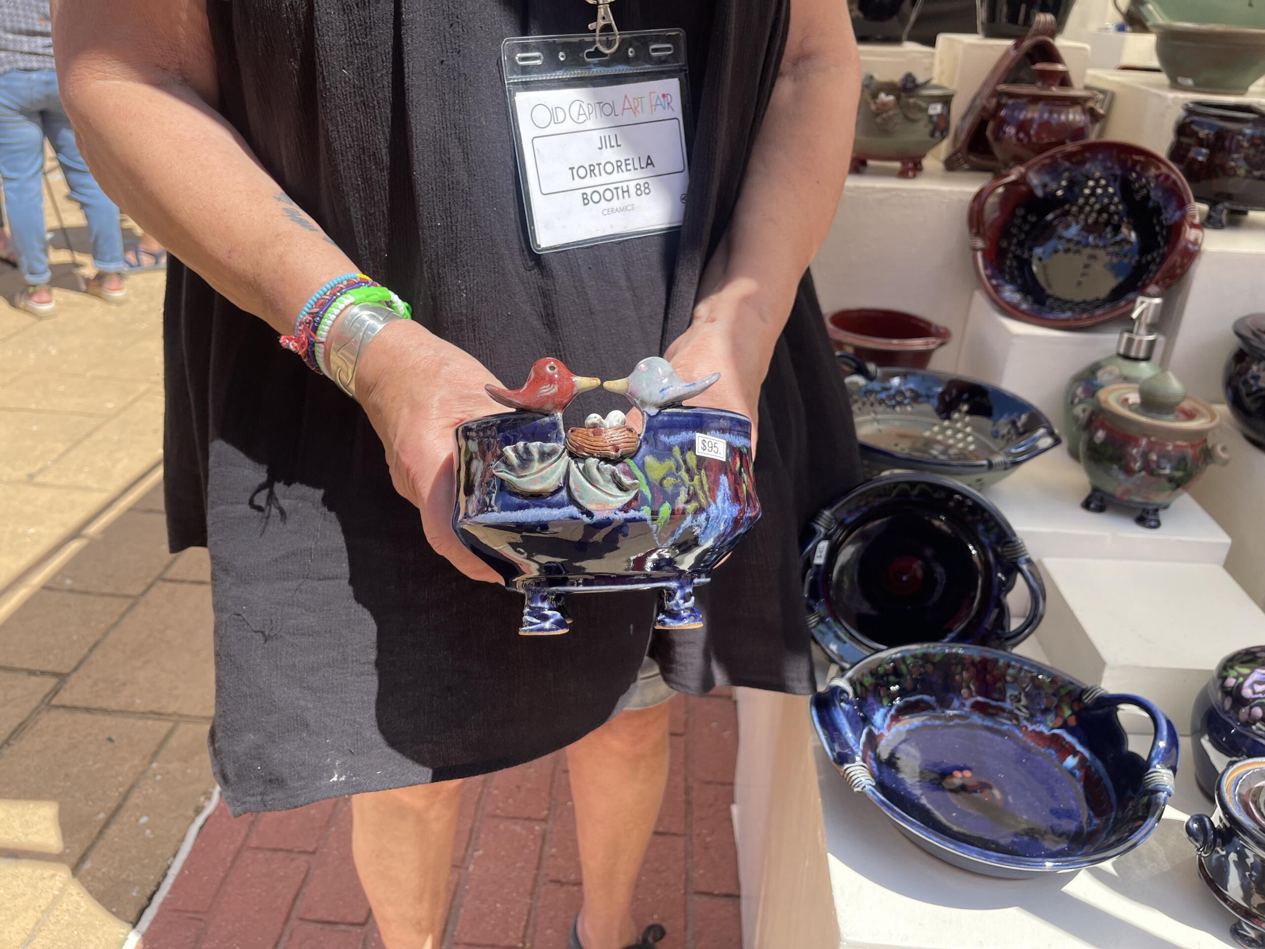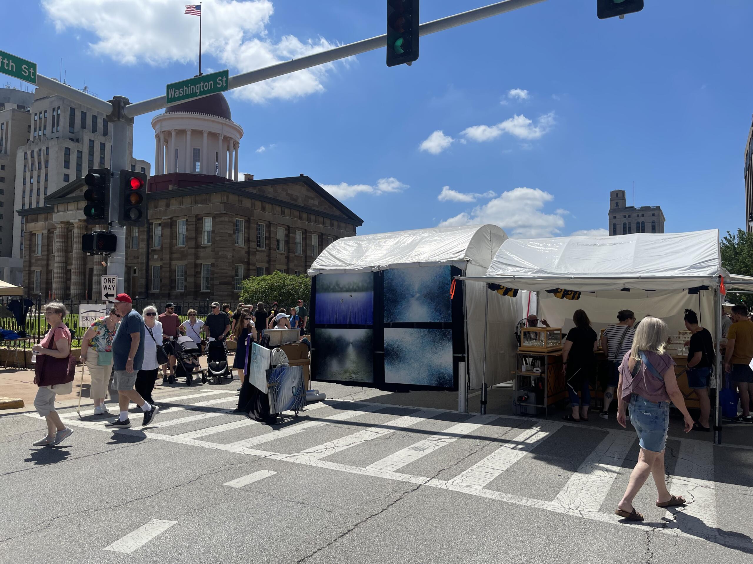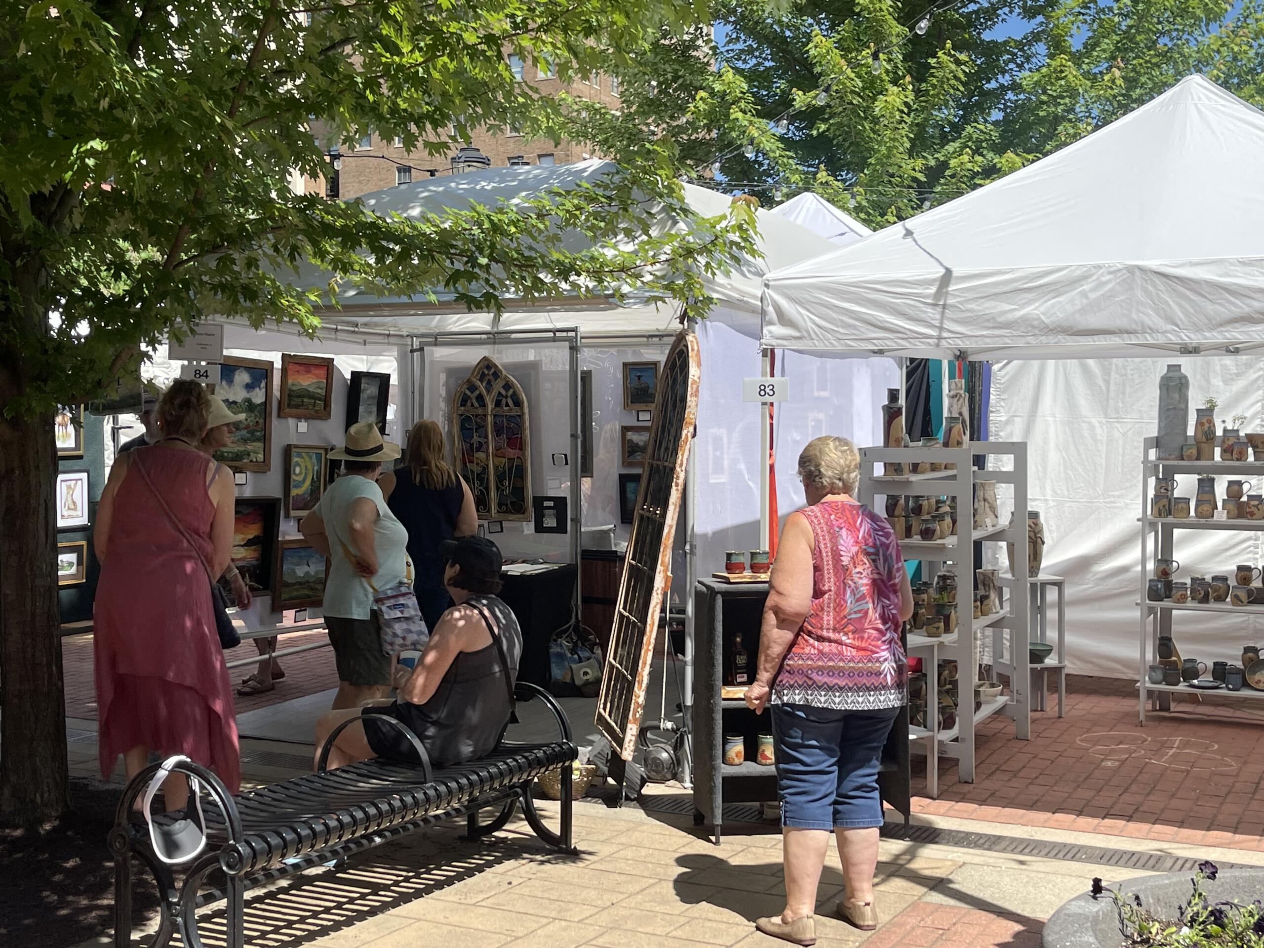 Springfield, IL. (CAPITOL CITY NOW) – On Saturday, the streets of Downtown Springfield were bustling with artists showcasing their paintings, sculptures, ceramics, leather creations, and more at the Old Capitol Art Fair. Many visitors left the event with unique, one-of-a-kind pieces.