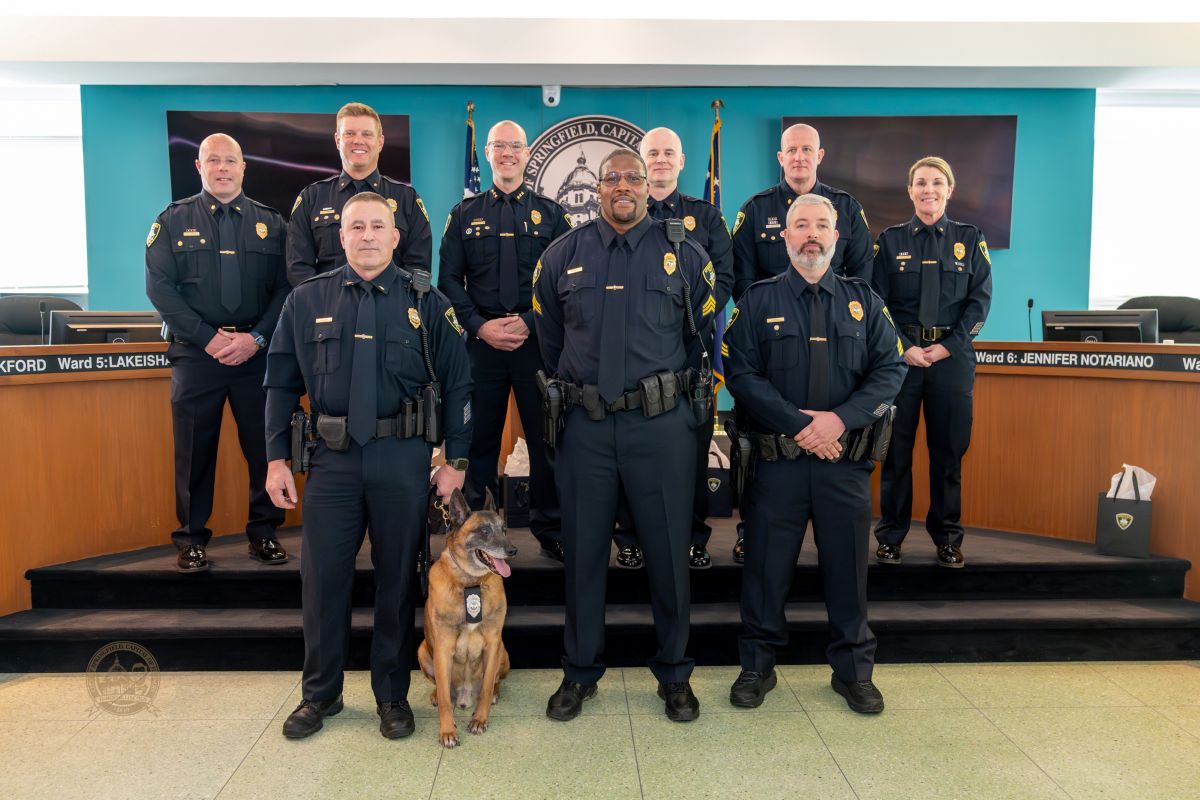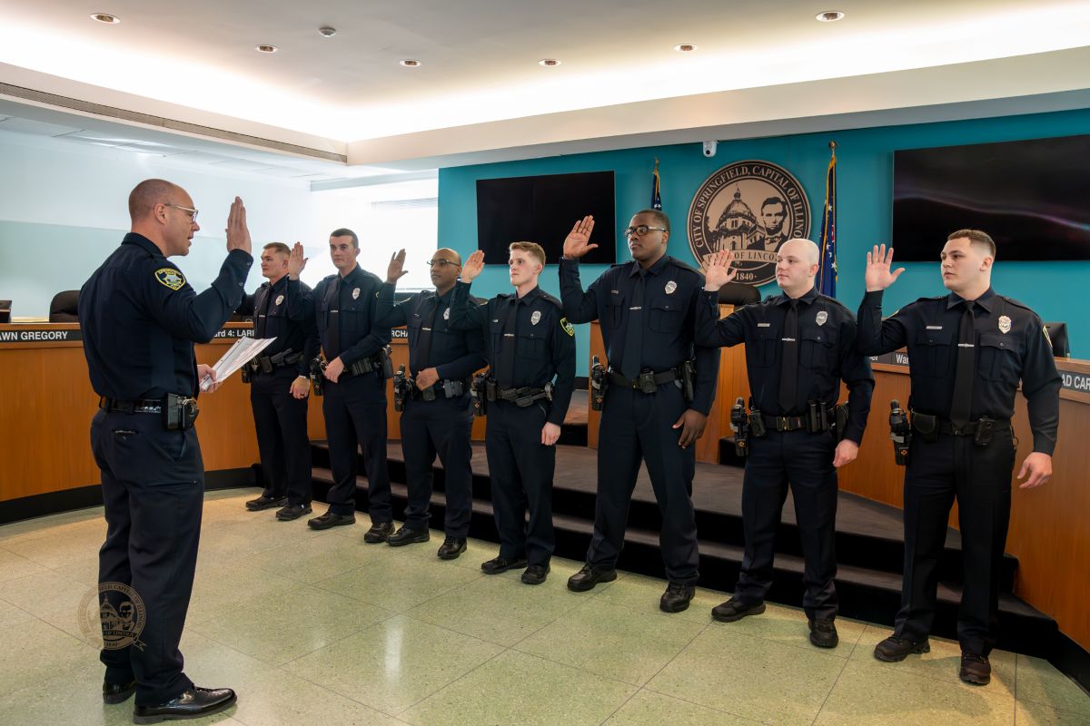 Seven new officers were officially sworn in during the ceremony. They completed their basic law enforcement training at the Macon County Law Enforcement Training Center in December and are now assigned to the Springfield Police Academy for additional training. They will soon transition to the Field Operations Division, where they will participate in the field training program under the guidance of veteran officers.