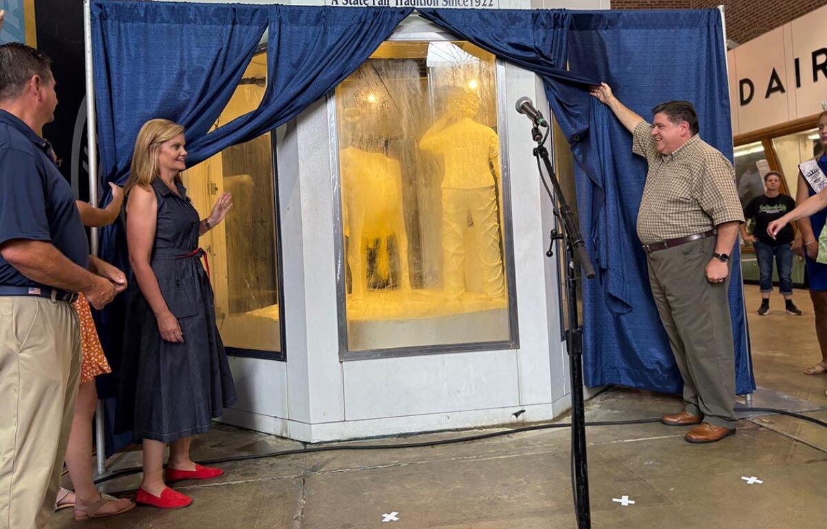 Jerry Costello II, director of the Illinois Department of Agriculture, knows the drill. “For over 100 years, 800 pounds of butter has been sculpted into this sculpture,” Costello said at Wednesday’s unveiling of the butter cow in the Dairy Building on the fairgrounds. “We want to thank our sculptor, Sarah Pratt,” who is from West Des Moines, Iowa. “Year after year she churns out an amazing sculpture.”