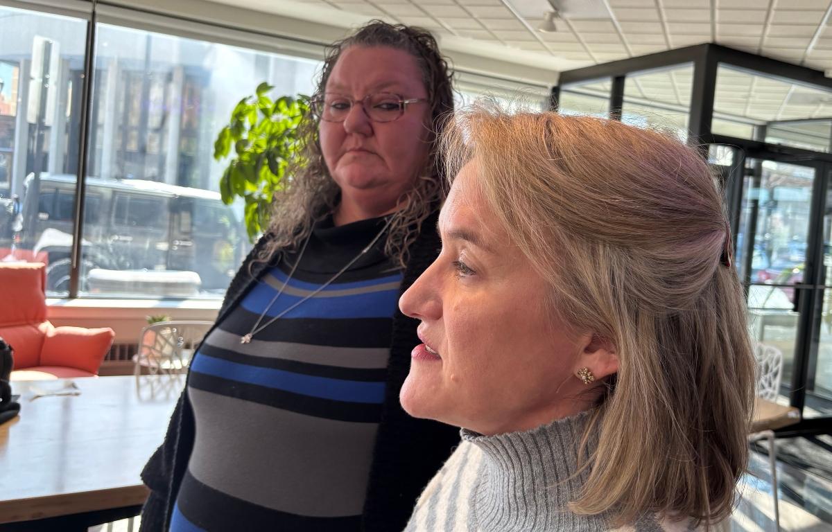 Watson and U.S. Rep. Nikki Budzinski (pictured, right) (D-Springfield) were part of a meeting with management of the Section 8 property, which houses seniors and the disabled. After the meeting, Watson told reporters progress has already been made.