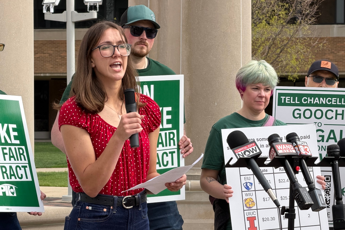 “Your work is not easy, but you are so dedicated to it,” said Turner (D-Springfield), to the strikers. “But, you have families. You have obligations. And, in order for you to do this work, you have to have a living wage. You have to be able to put bread to the table. You have to be able to put gas in your car to get out here to UIS.”