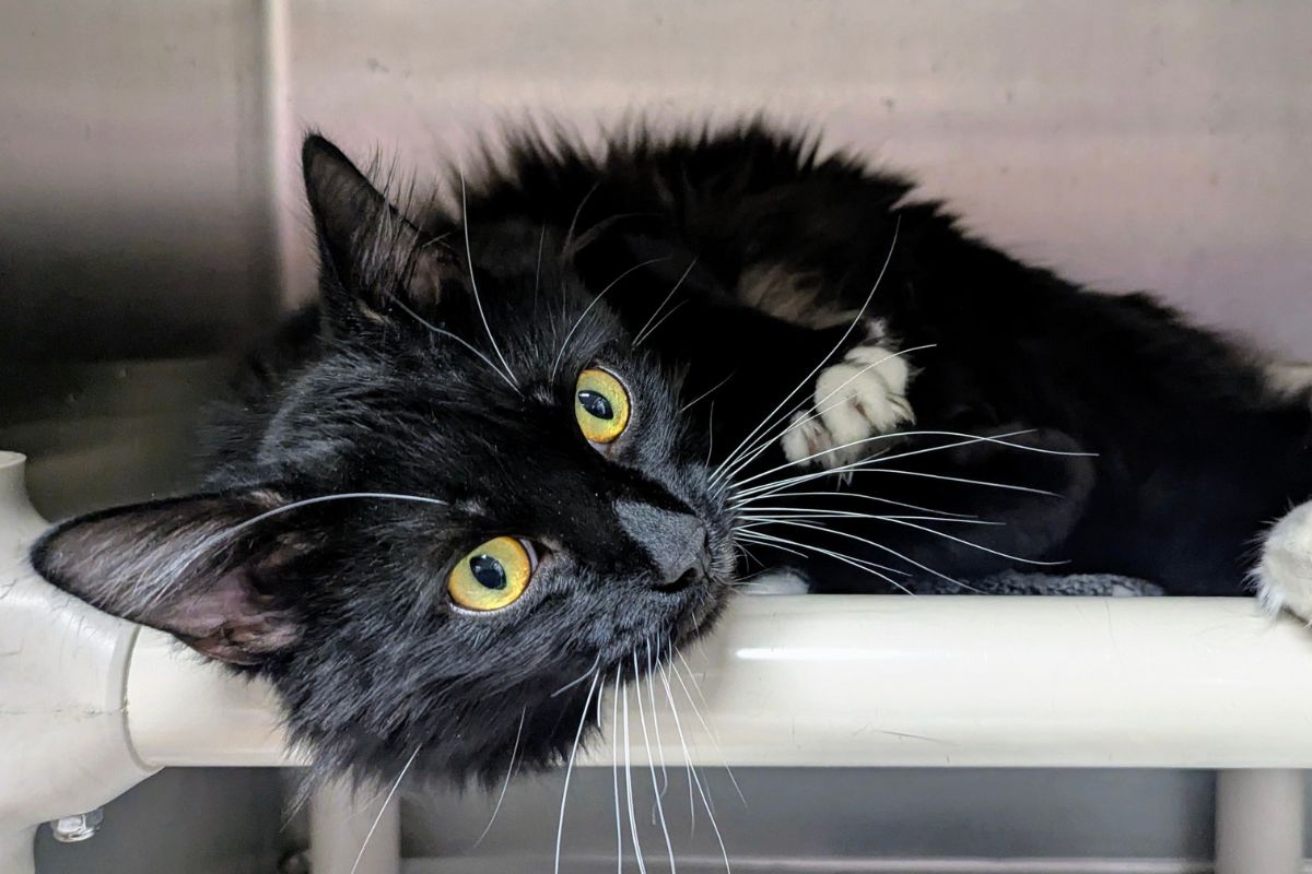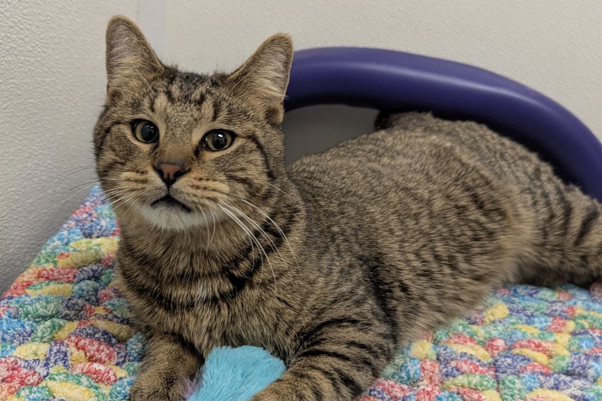 This talkative tabby hunk is Edward. He arrived at SCAC as a stray on January 4 and is estimated to be 3 years old. Edward enjoys good conversation and quality ear skritches.
